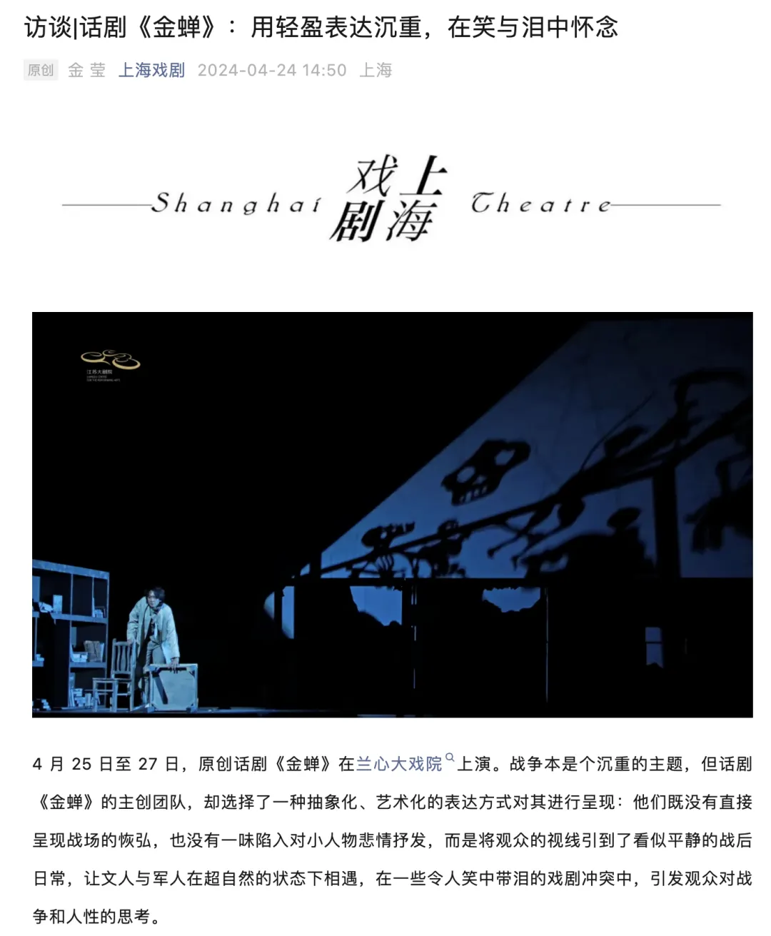 可以看出剧本作者很有想象力,用好看的故事和怪诞的舞台挖掘了一个深刻的主题。写战争却不直面战争,而是通过叶书林执笔写书的设定,完成对生命价值的思考。