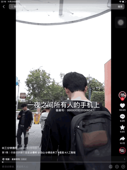 “愚人节那天,所有人的手机上都被安装了一款名叫‘星座审判’的APP,要求大家票选出最讨厌的星座。起初所有人都以为这是一场恶作剧......”竖屏画面中,流畅的运镜、密集的鼓点和配乐、悬疑紧凑的剧情,在短短2分25秒的时间内完整播出。