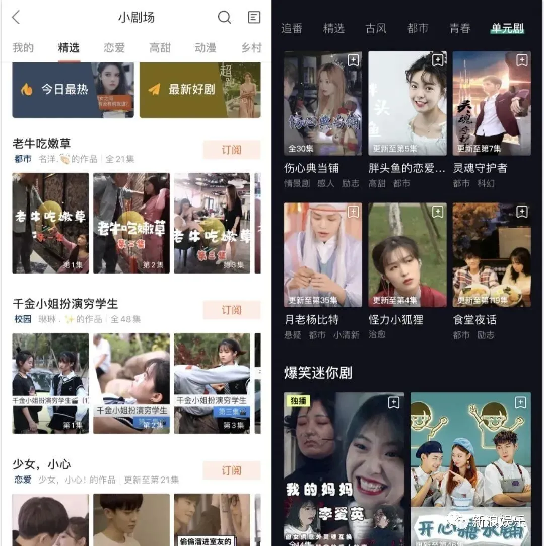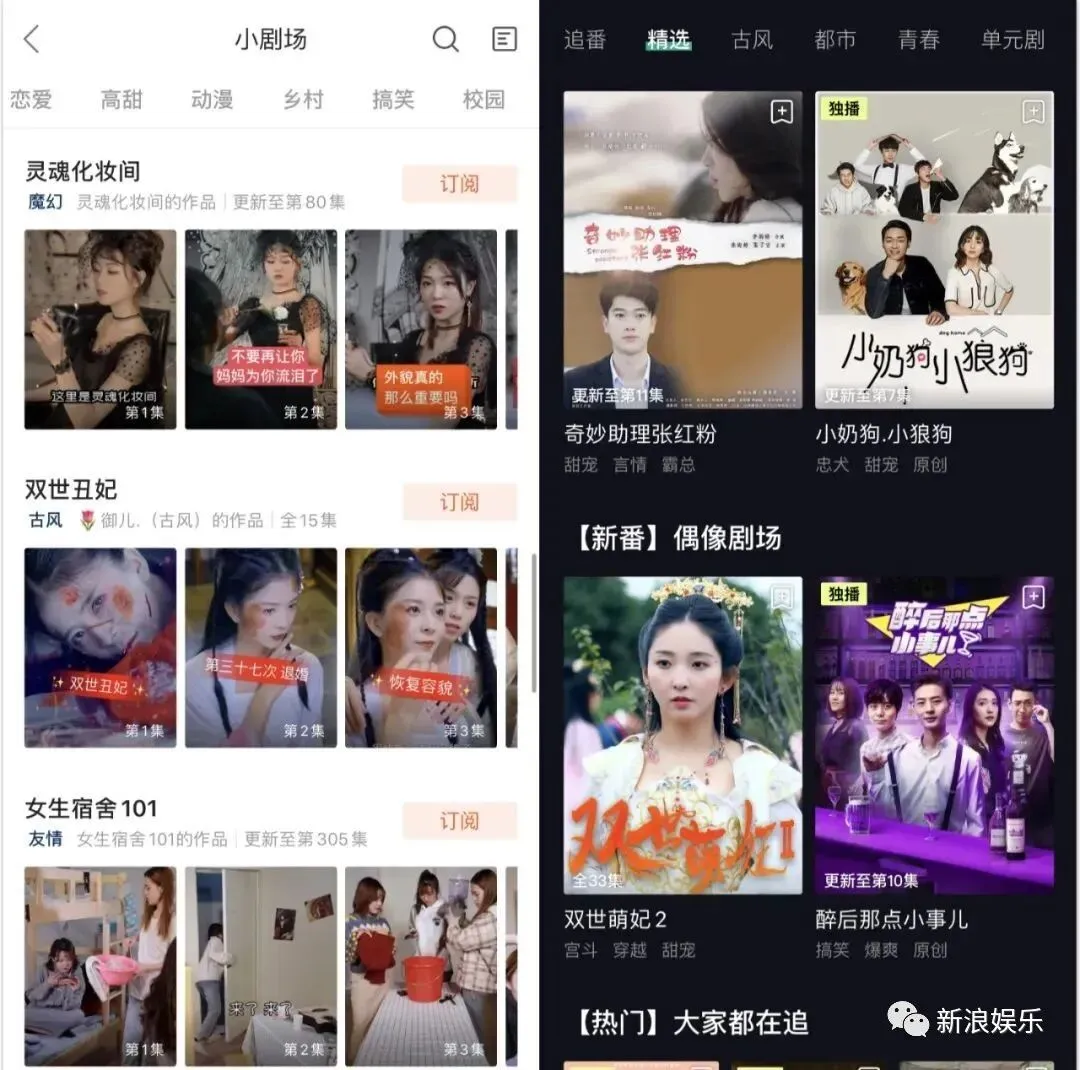 某短视频平台小剧场中,各式内容题材完全不输如今的网剧、网大,古装、民国、现代、甜宠、僵尸、惊悚、穿越、玛丽苏,虽制作水准欠佳,但内容的想象力绝对有那么几部是可以突破观众认知的。