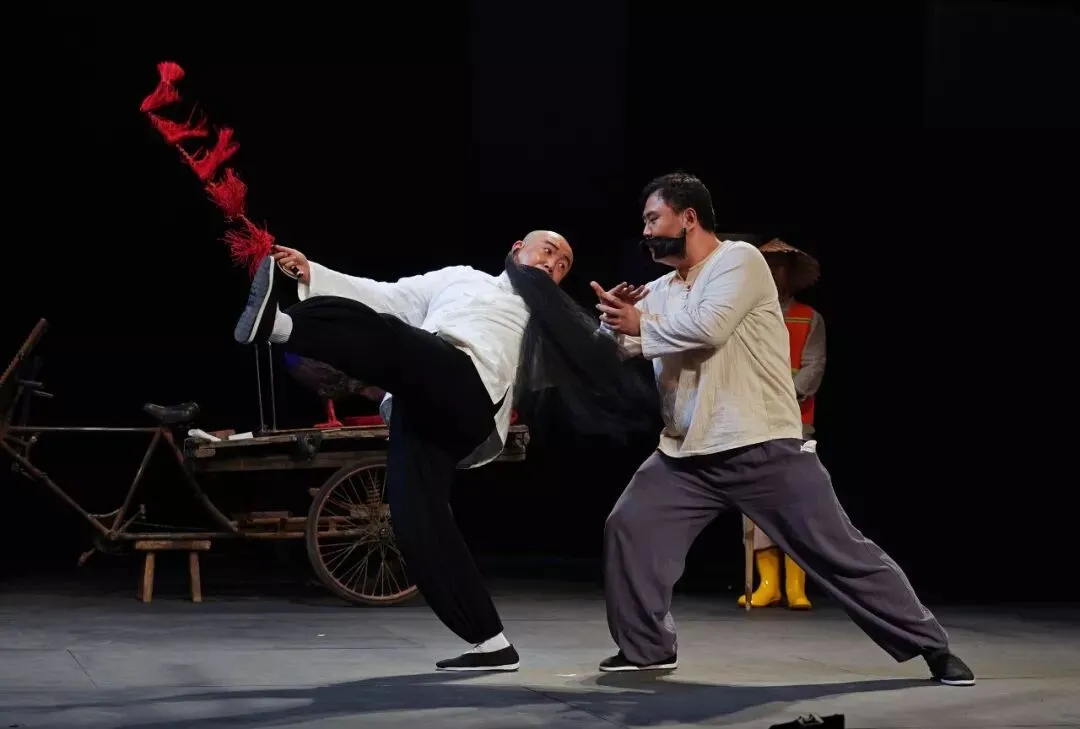 《鸟人》中的一位主角是擅长养鸟的前著名京剧演员三爷,是养鸟界和京剧界的大佬,而在这次《鸟人》中,饰演三爷的演员马阿龙原本就是专业的京剧演员,剧中的京剧唱段可谓是手到擒来,台下更是叫好声不断!依靠马阿龙的京剧功底,特别根据剧情发展设计了锣经,在舞台上为观众呈现京剧打击乐的“阿卡贝拉”,以阿卡贝拉的演唱方式完全替代京剧乐队伴奏,这一变化可谓是一大惊喜,也使得这版《鸟人》更具戏曲化。