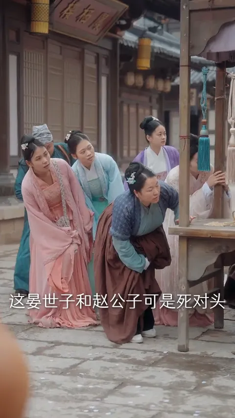 路人丁:这晏世子和赵公子可是死对头。赵公子娶妻,这纨绔定是来砸场子的(通过路人旁白,点明男主前世身份和抢亲动机。)