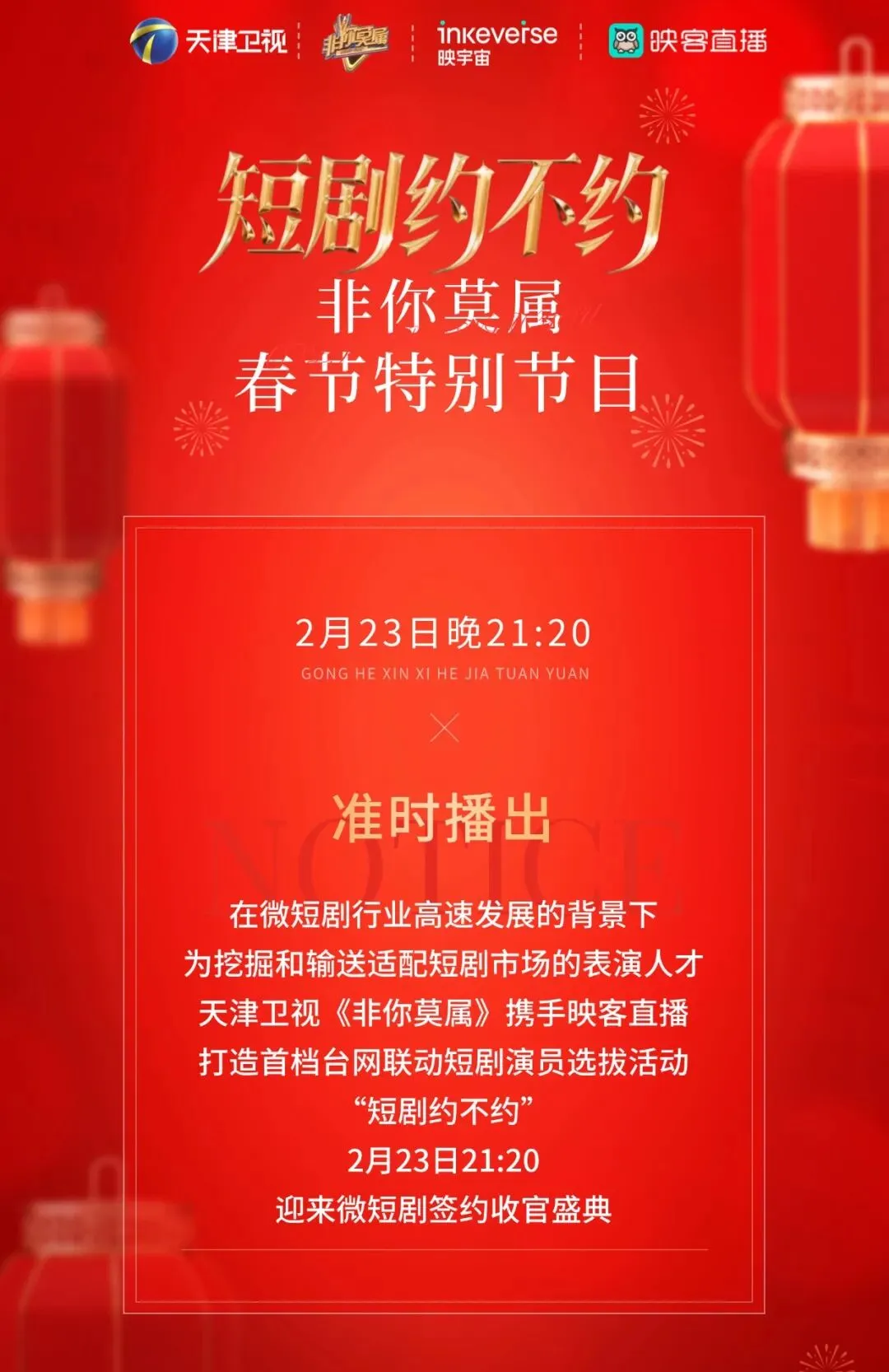 欢瑞世纪星链业务部演员龙熙与张珊、武汉贰拾叁楼演员李世豪倾力助演。每组留灯数量最高的选手将获得“未来之星”称号,并获得精品短剧中的重要角色,其余选手也有机会根据企业家的留灯情况获得常规片约
