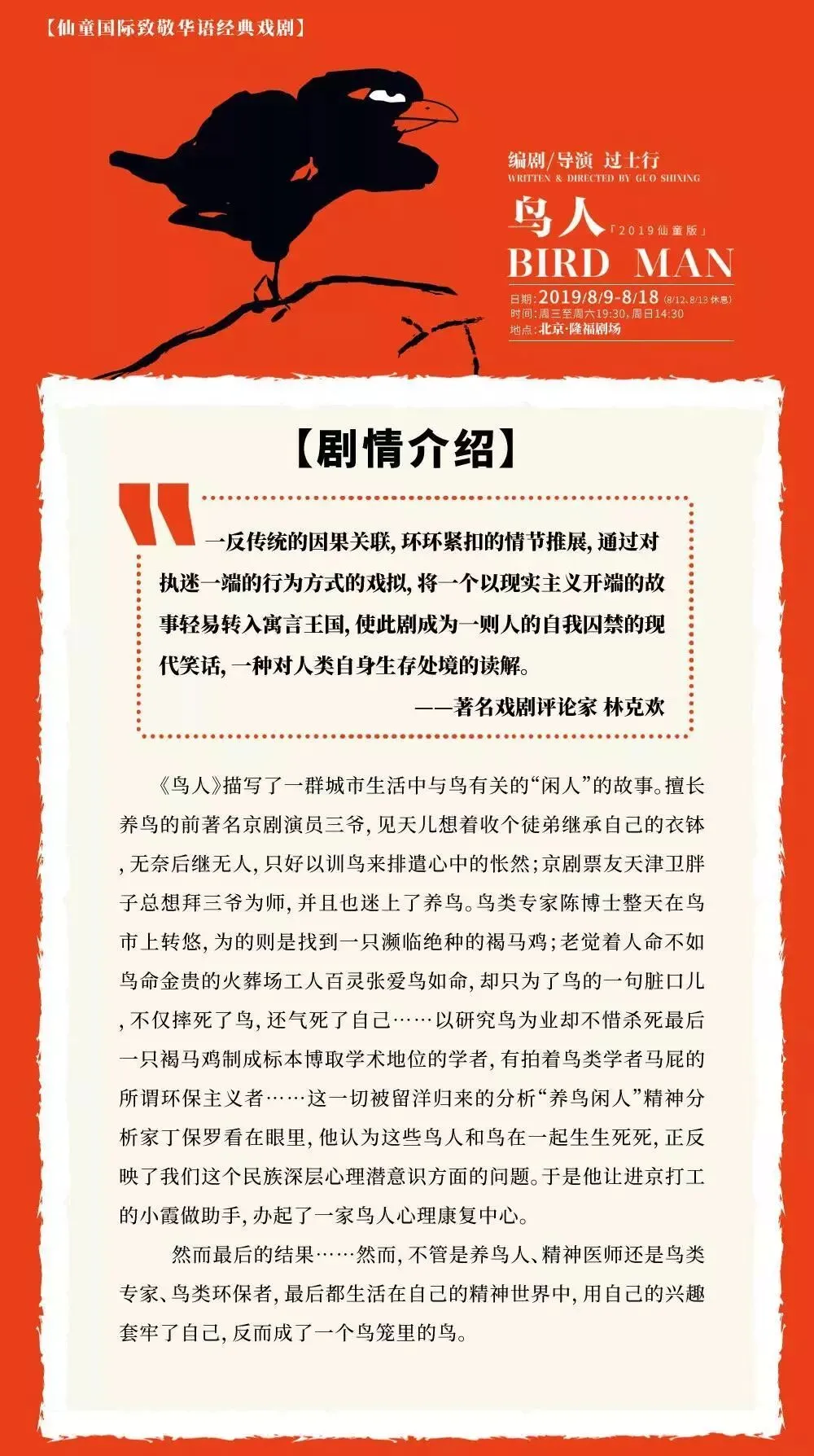 2019北京喜剧周仙童国际致敬华语经典戏剧过士行编剧导演作品·话剧《鸟人》