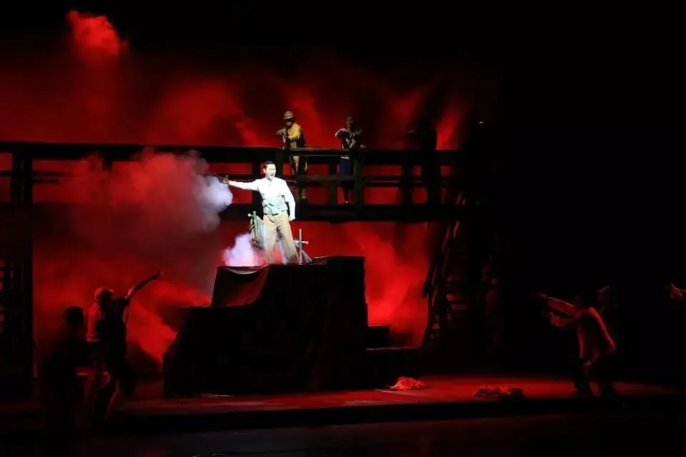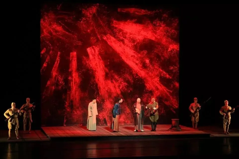 剧中的原创音乐,具有高亢的民族性的情感表达,外化人物情感,烘托舞台气氛,彰显了在国难临头之际,中国人民视死如归的爱国情操与崇离气节。
