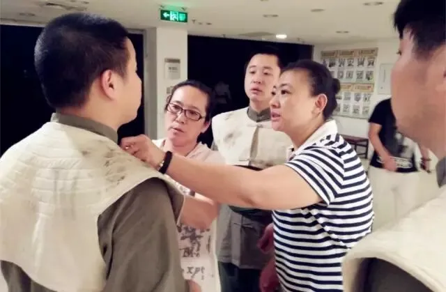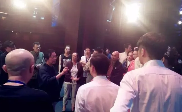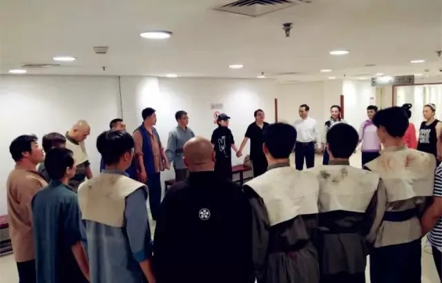剧组演出前一起打气加油