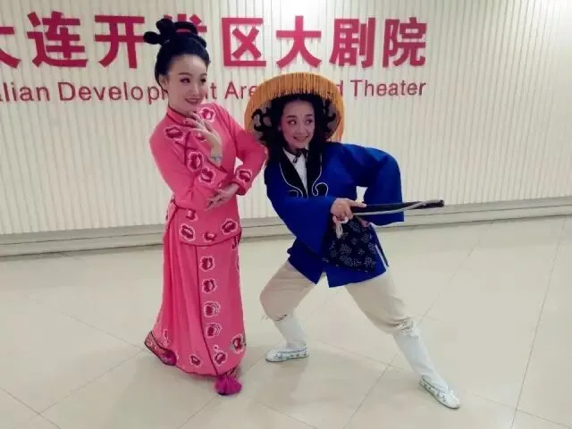 吕剧《王小赶脚》两位演员后台排练