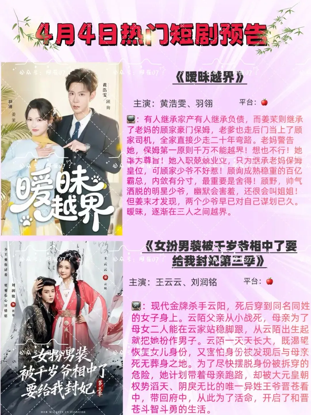 主演:黄浩雯、羽翎8. 《女扮男装被千岁爷相中了要给我封妃第三季》